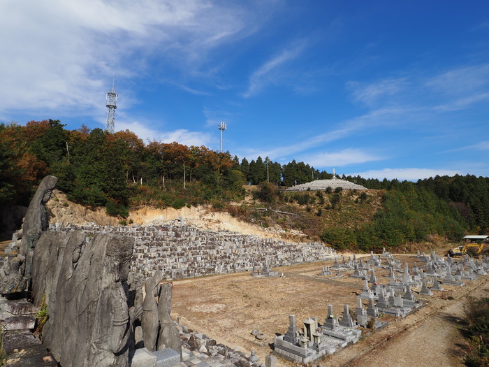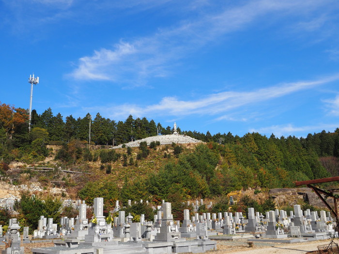 妙楽寺の本堂からさらに車で上っていくと広い霊園がある。