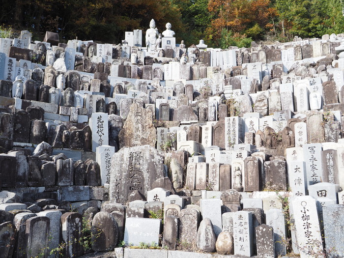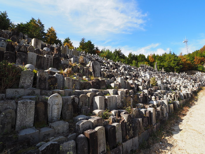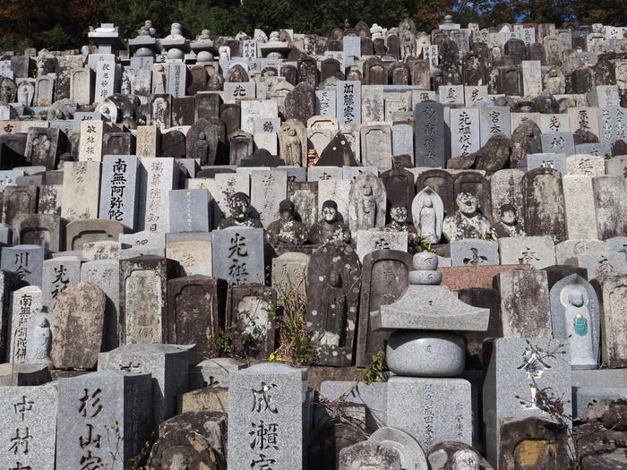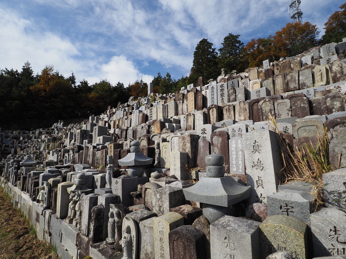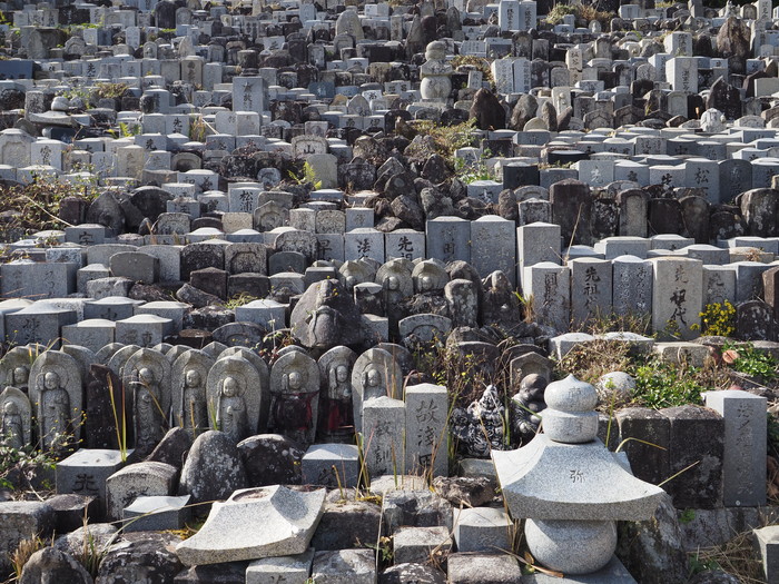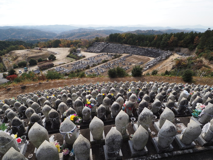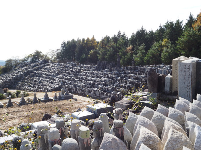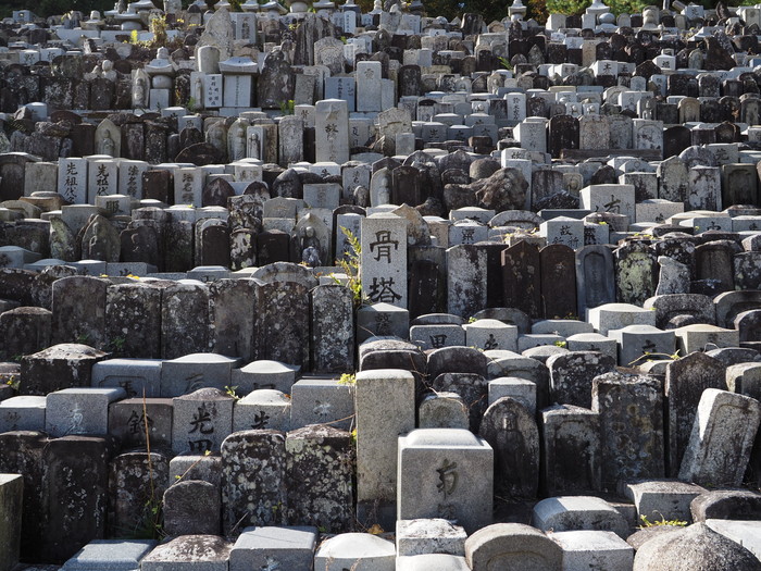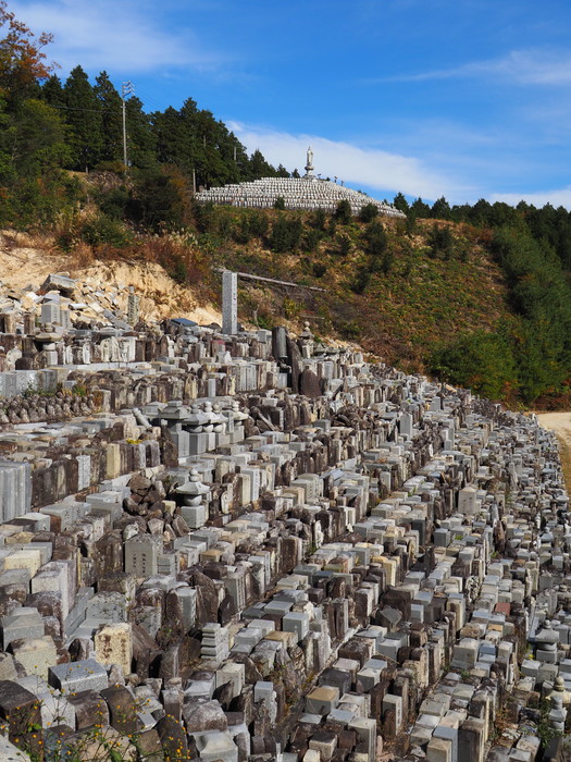 新規の墓地をとり囲むようにズラリと古い墓石が並んでいる。その数は2万基以上。それらの墓石がひな壇状に隙間なくビッシリと並んでいる。
