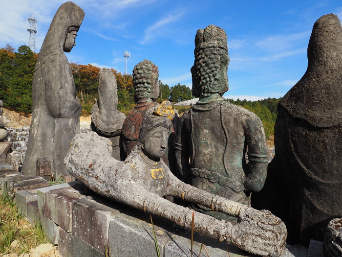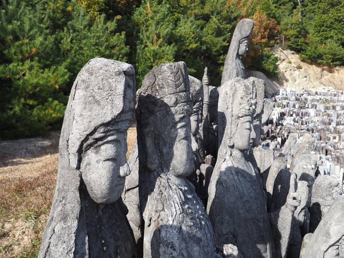 再び下に降りて正面から見る。コンクリ像のほとんどが観音像だ。