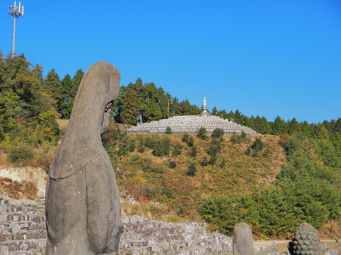 墓地のさらに上の丘には、大きな観音像が立っているので、次にそちらを目指す。