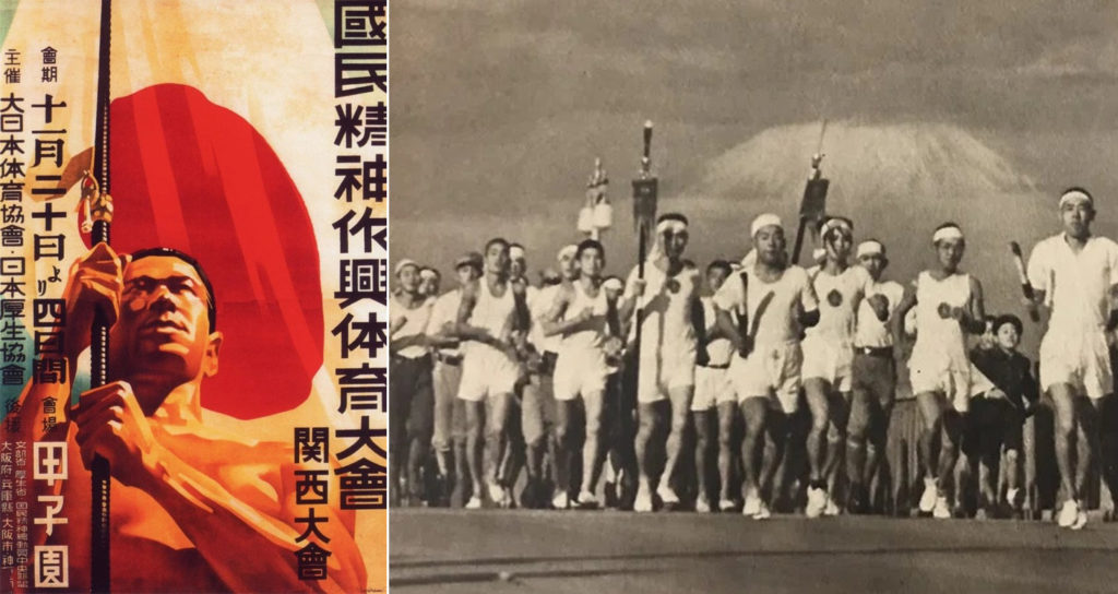幻となった東京オリンピックでは、ベルリン大会での聖火リレー大成功に触発され、いくつもの壮大な聖火リレー案が提唱されていた。たとえばローマから海を越えて聖火を持ってくるという世界規模の案や、天皇家発祥の地とされる宮崎神宮から東京までを聖火でつなぐ案などがあったのだが、全ては五輪返上とともに露と消えた。