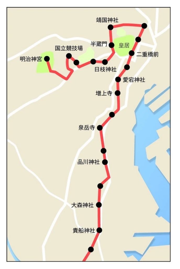 そのコースを眺めると、まるでぐるりと皇居を囲い込むような線を描いているのである(図参照)。