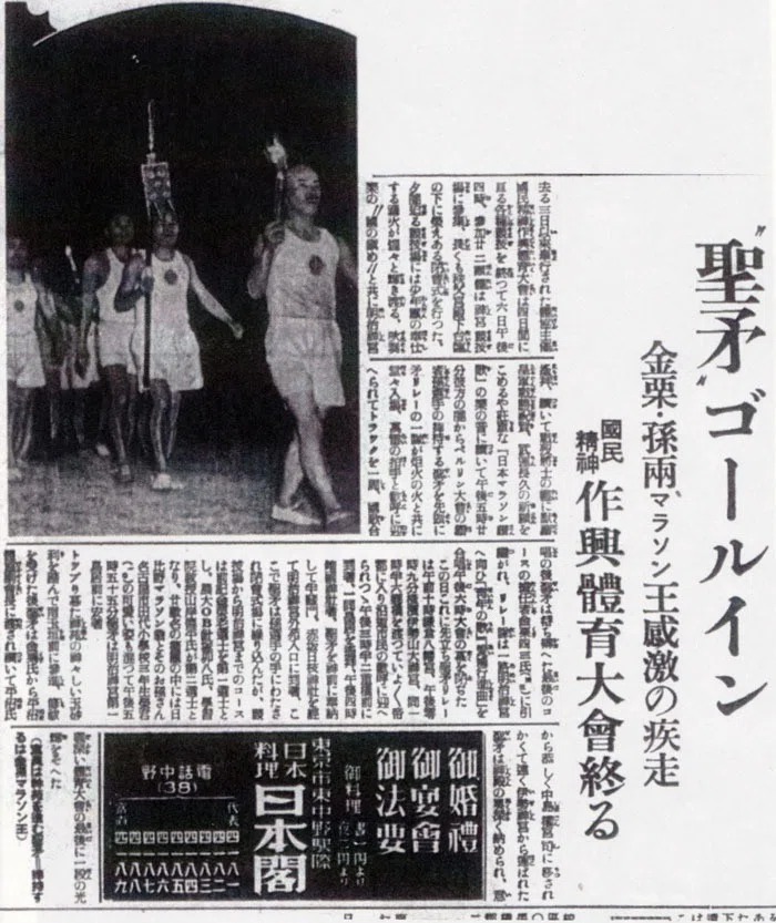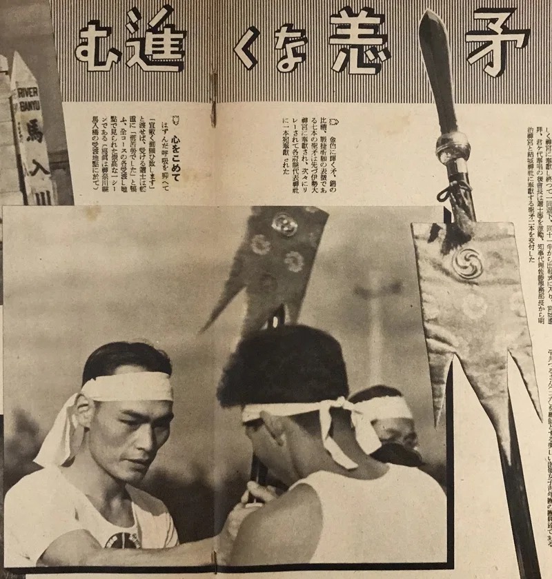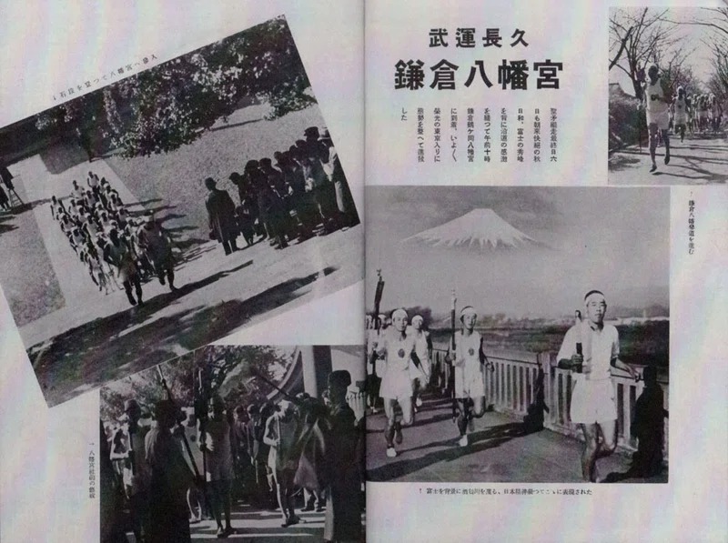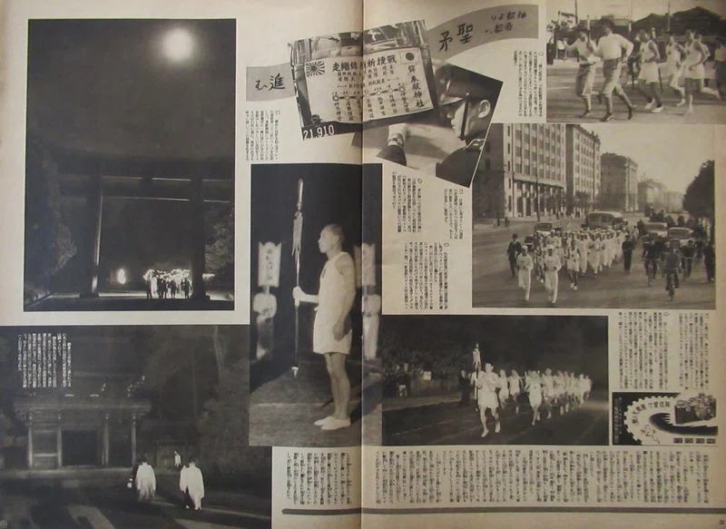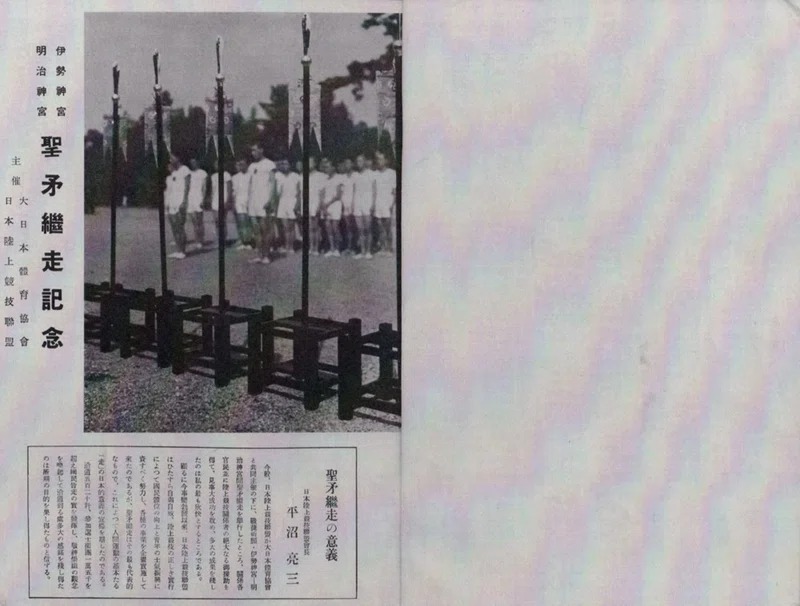 今ではほとんど知られなくなっているが、当時この大会は「聖矛継走」と呼ばれて新聞でも盛んに報じられていた。なにしろリレーには走者、伴走者だけで1万5千人もの国民が参加していて、この大会だけの特集号をつくった雑誌もあったほど。その記事からは走者の一団が行く先々で歓迎を受けていた様子もうがかえる。