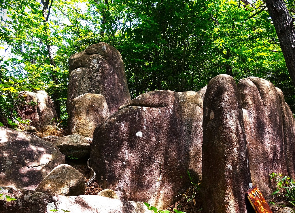 それは、山頂付近に太陽石と立石(メンヒル)があることと、すぐ近くに拝殿となる山があり、そこには方位石と太陽光を反射する鏡岩、祭壇となる机状に組まれた石(ドルメン)が存在していることである。