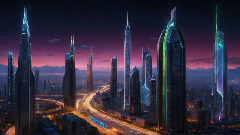 愕然としたディーナッハが力なく窓の外を見ると、そこには雲に届かんばかりにそびえ立つ超高層ビルや、宙を浮いて走り回るクルマなど、現実離れした風景が広がっていたのだ。