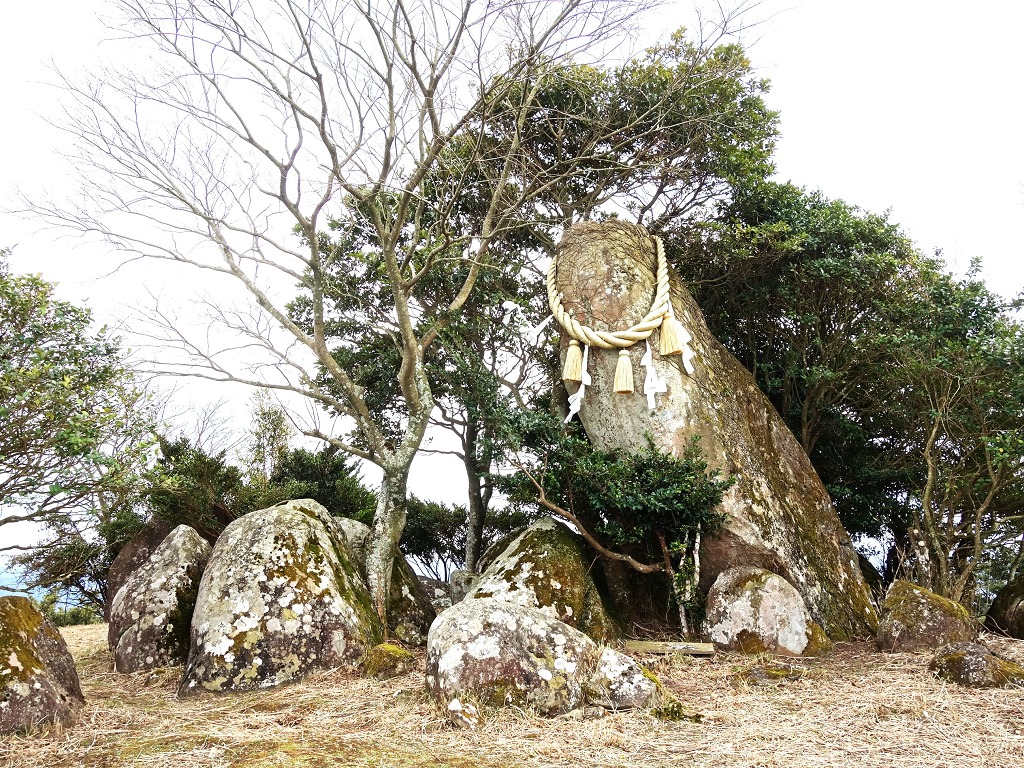 それを裏づけるように、登山道の途中には「月ノ神谷」「日ノ神谷」などの環状列石、頂上には古代人が神々を崇めた祭祀場跡が今も残されている。