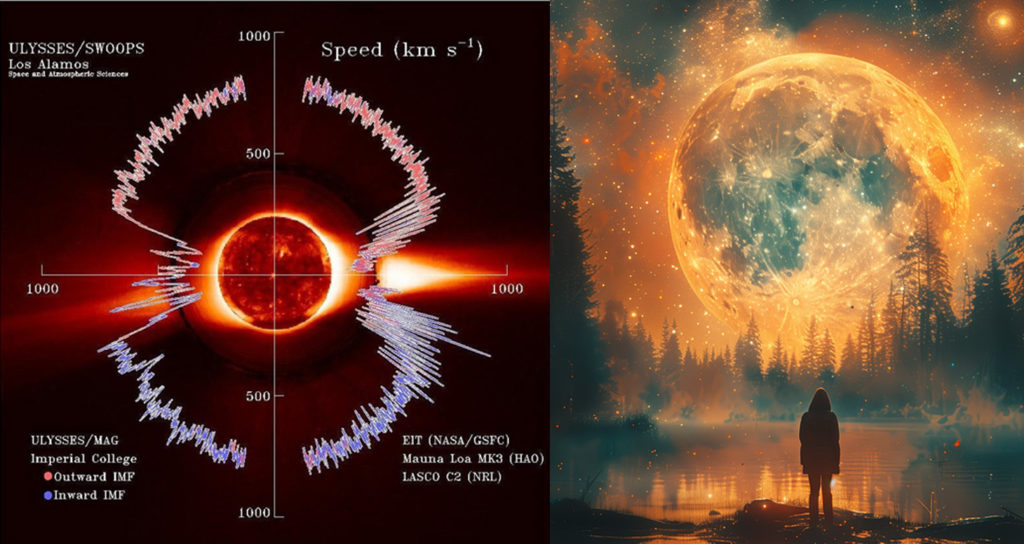 月と地球を含め、太陽系の惑星軌道を維持しているのは、太陽から放出される膨大な量のプラスとマイナスの電荷、つまり太陽風だ。