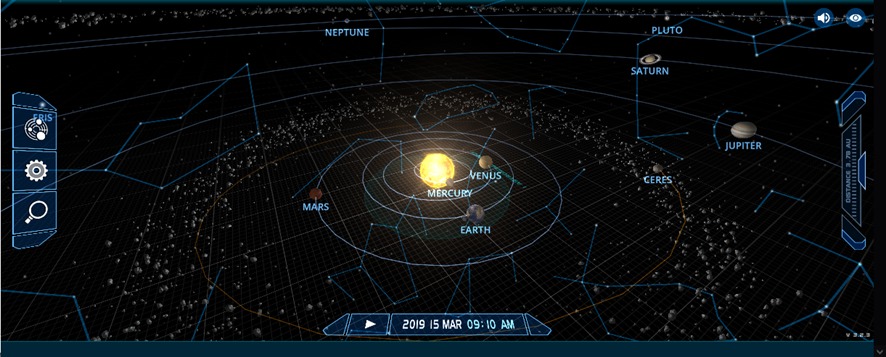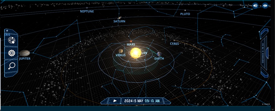 上の図は2019年と2024年の太陽系の配置を見た図だ。2019年には木星と土星が画面右側に集まっているが、2024年には土星と木星は離れ、画面左側にずれた。