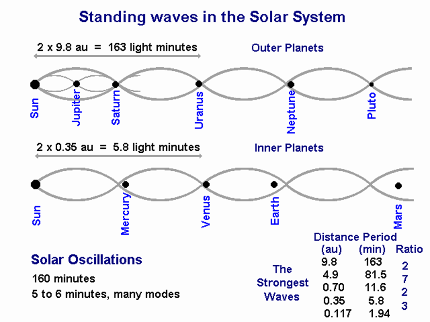 また、太陽は5分ごとに振動(膨張と縮小)している。この太陽振動は、太陽に流れ込む星間物質と放出される太陽風の量を調整して、太陽の大きさを一定に保つ役割があると考えられる。この太陽振動により、太陽が及ぼす電荷には5分ごとの周期が作られ、太陽系全体に定在波が生じることになる。