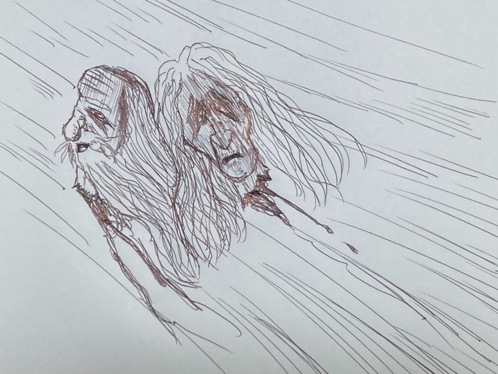 その大風に乗って、ふたりの生首は山の方へと飛んでいってしまいました。