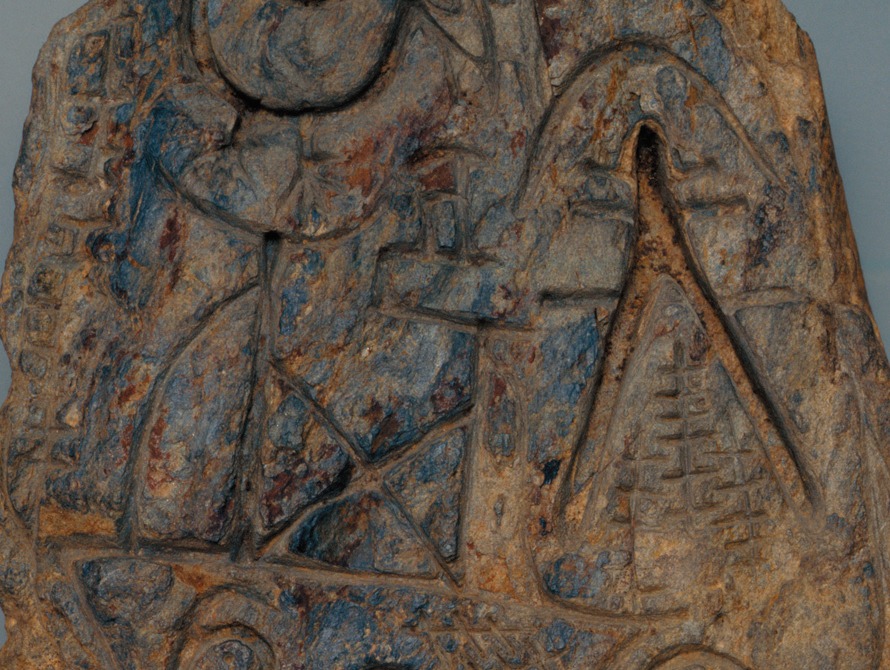 一見して明らかなように、石の表面には船や建造物、動物、人らしき姿、さらには文字のような模様が線で刻まれている。