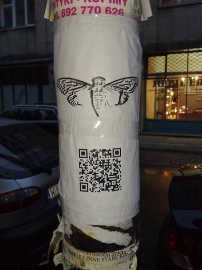 謎解きのプロセスが繰り広げられるのは、コンピューター上だけではない。正解すると実際に行くべき場所が示されたウェブサイトに導かれることもある。サイトに示された場所にいくと、セミのロゴマークの横にQRコードが印刷されたポスターが貼られている。QRコードでたどり着くサイトに次のミッションが示されている。