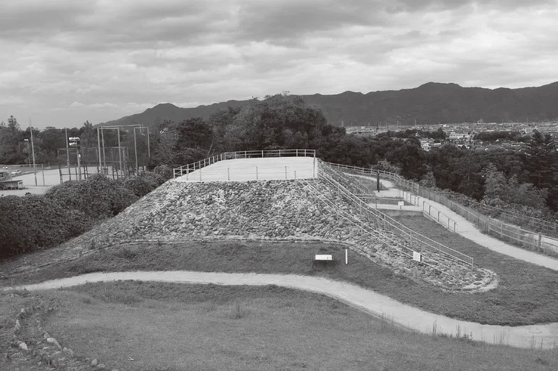 だが、初期の墳墓は小さいので、スロープとしての墓道は必要なく、特殊な形となった理由は、おおむね次のようだと考えられている。そもそもは真四角な方墳だった。だが角っこは、形が保てずに崩れてしまう。その角を守るため、貼石の置き方を工夫した。それが形式化し、墳墓の巨大化に伴って墓道となったのだ。