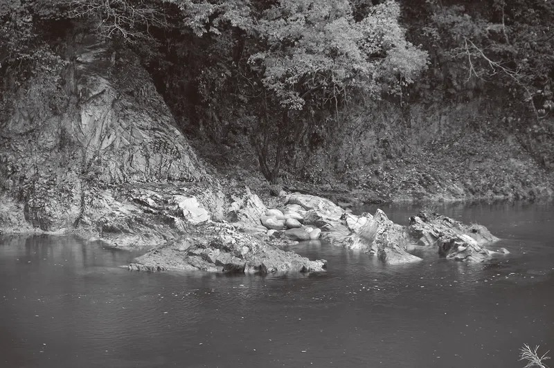 八岐大蛇が泥酔して首を垂れているような岩もあって、さも須佐之男命との決戦の場にふさわしい。