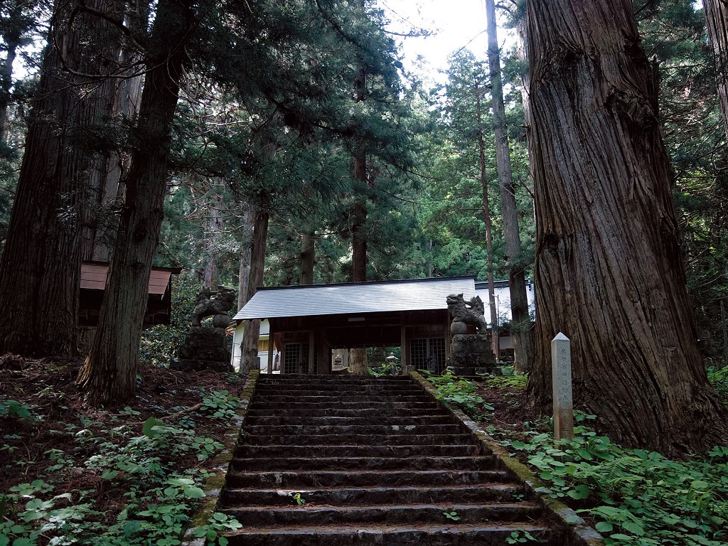 比婆山の熊野神社は、創建年代は不詳だが、社伝によれば和銅6年(713)までは比婆大神社と称し、嘉祥元年(848)には社号を熊野神社と改めたという。主祭神は、『古事記』が比婆山に葬られたと伝えるイザナミ神である。神域は広大で、100株を越える巨杉が群叢し、森厳な古社の風致を形成している。