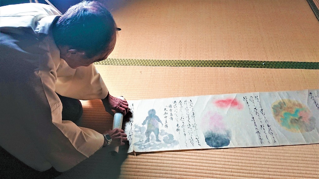 この古社が秘蔵するくだんの絵巻は、一般には公開されていないが、今回ムー編集部では、その一部を撮影した珍しい写真を、地元関係者を介して特別に入手することができた。