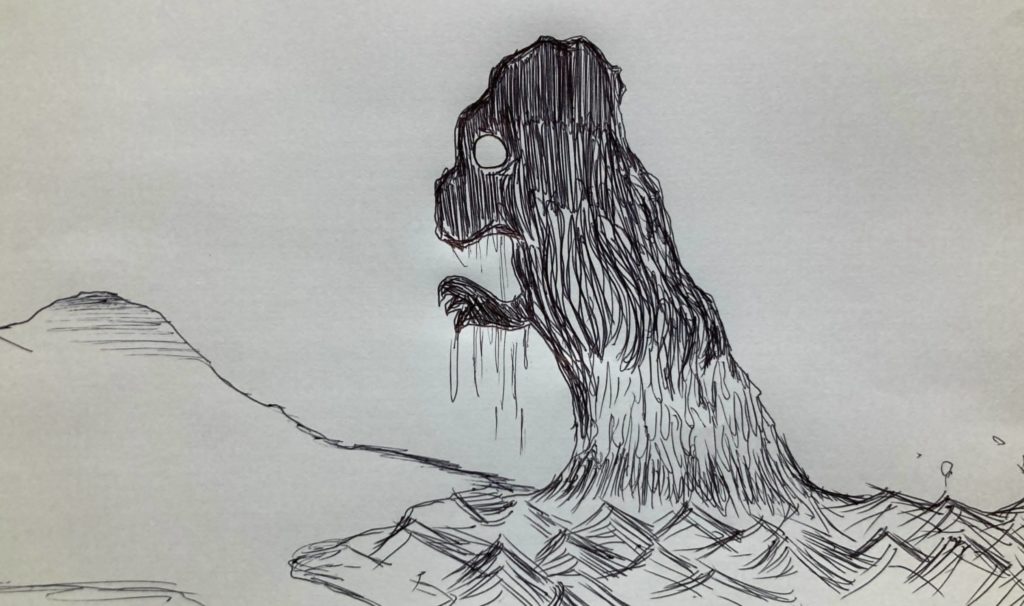その怪物は不思議なことに、海にいたときは黒ずんだものに見えていましたが、陸に上がると「風」のようになって、その形がまったく認められませんでした。