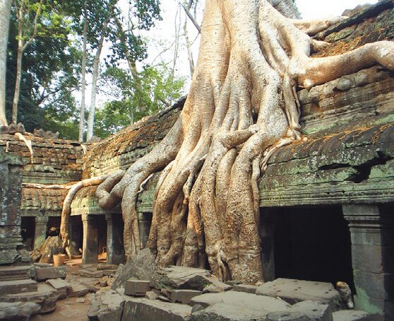 カンボジアといえば、9世紀から13世紀初頭にかけて造られたクメール王朝の遺跡、いわゆるアンコール遺跡群がよく知られている。有名なところではアンコール・ワットやアンコール・トムなどが挙げられるが、今回紹介するのは同遺跡群の東部に位置するタ・プロームだ。