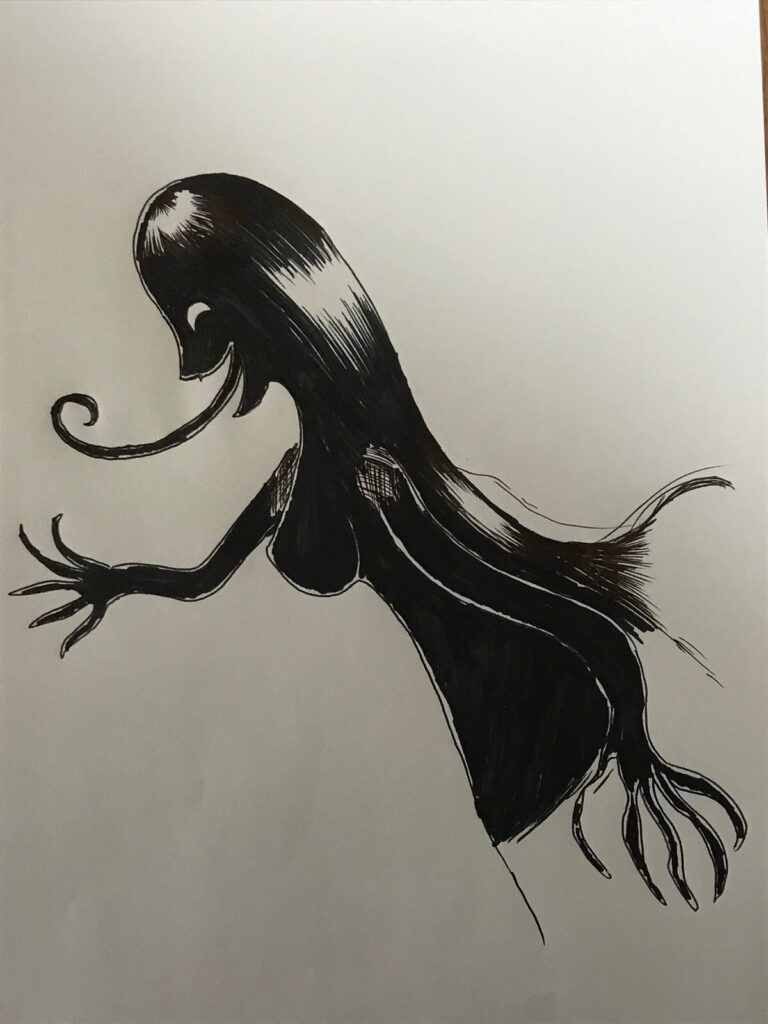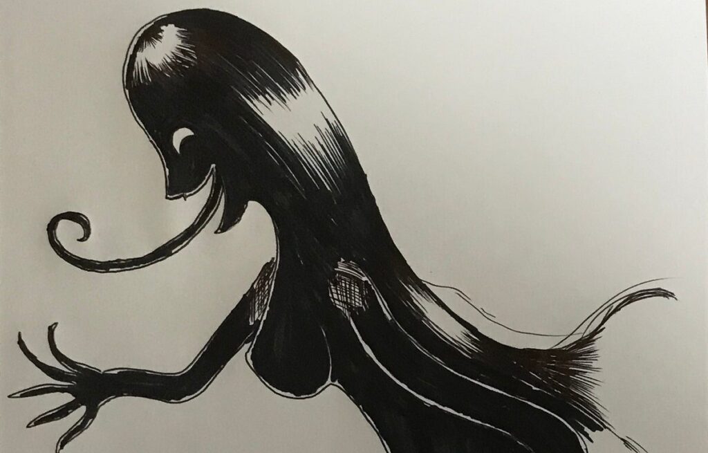 きれいではありますが、口は耳元まで裂け、笑うたびに舌をぺろぺろと出します。しかも、その舌は娘の額にまでつくほど長いのです。