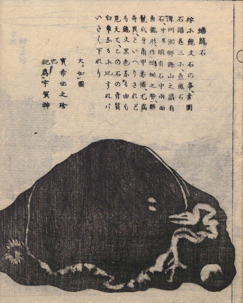 「蟠」とはわだかまるという意味で、蟠龍石は大きさ30〜40センチほどの黒い石のなかに、まるで龍が封じ込められたような白い模様が浮かんでいるもの。幕末安政時代ごろに記された地誌『利根川図志』にもとりあげられているほど有名なもので、ふだんは寺の宝として秘蔵されていて、この展示のために特別公開されているのだ。