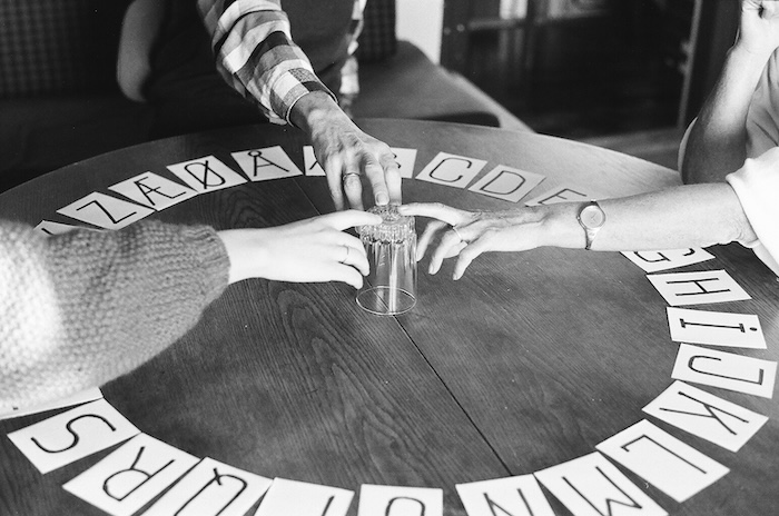 ァベットの上を動く。その動いた順に文字を書き留めると、単語や文章ができあがるといったものだ。1970年代、日本の小学生の間で流行した「コックリさん」に興じた著者には少し懐かしい思いがする。