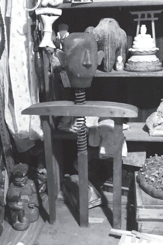 だからといって、何を目的に造られたのかは意味不明のままだ。無理やりに説明をつけるなら、美術家による現代アート作品……としかいいようがない。いずれにせよ胴体にあたるトルソー部分も、マネキンのような頭部も、別々のありものを接続しているように見受けられる。「もともとこれ、Aさんの仕事仲間である東京の骨董屋さんが、少し前に入手したものらしいんです」