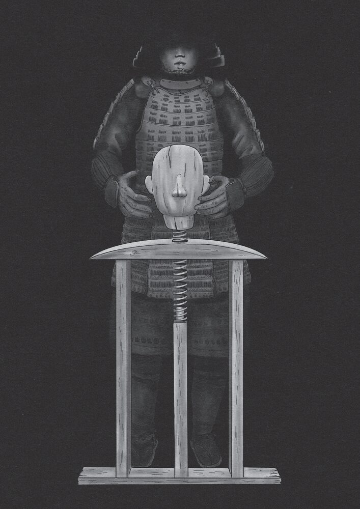 博物館にて戦国武将の甲冑が展示されているのを見た人は多いだろう。あの鎧部分を立てて飾るための道具が鎧掛け(鎧立て)だ。それを細工し、バネ仕掛けの頭部をわざわざ捻じ込んだものではないか、というのが古物商Aさんの見解だった。