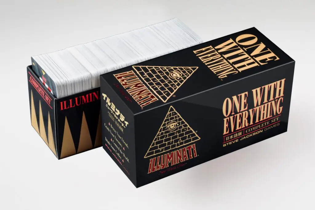 ちなみにイギリスのアナログゲーム界にも同姓同名のスティーブ・ジャクソン氏がおり、こちらも大ヒットゲームブック『火吹き山の魔法使い』等で知られる有名人のため混同されがちだが全くの別人。イルミナティカードは“ふざけてる方のスティーブ・ジャクソン”とも呼ばれる人物が作ったゲームだというのが重要なポイントだ。