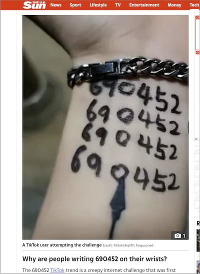 欧米でブームを巻き起こしている、寝る前に自分の手首に「690452」という“謎の数字”を書き記すネットチャレンジ。一歩間違えれば命を落としかねない、危険な行為だった!?