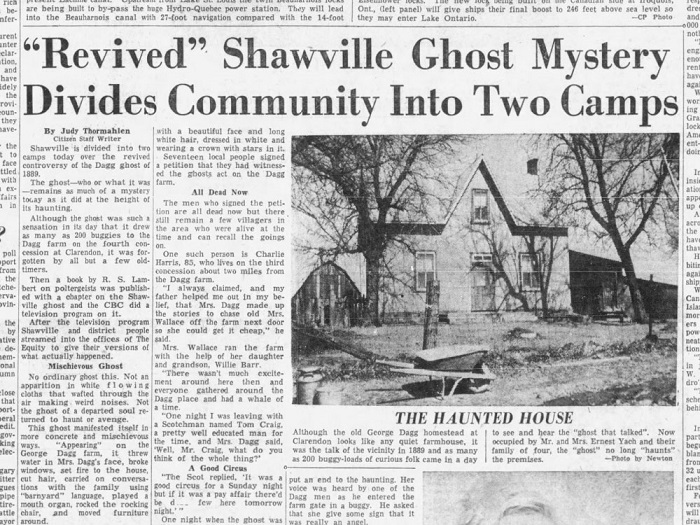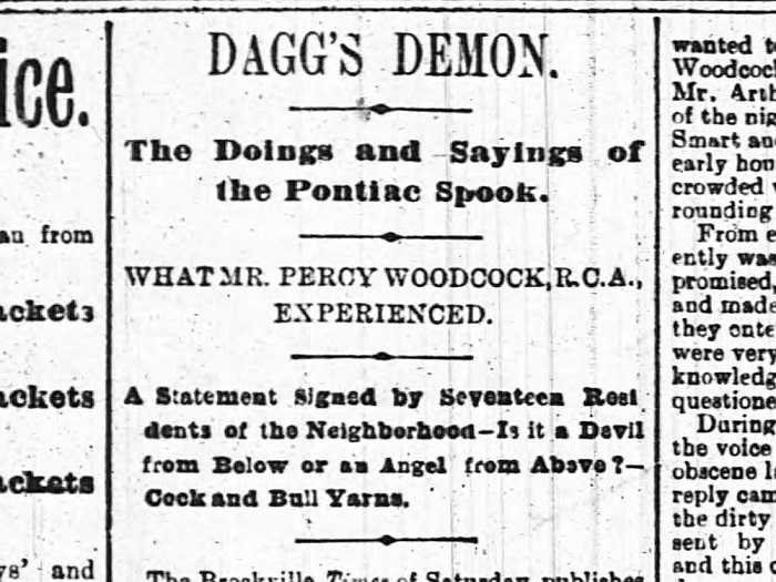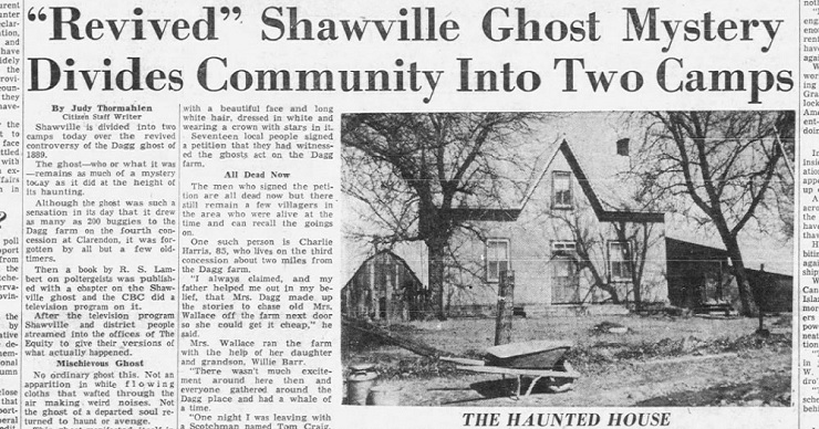 祟りや霊障の中には分類が難しい、本当に奇妙なものがある。1889年、農夫のジョージ・ヘンリー・ダッグとその家族(妻のスーザン、4歳のメアリー、2歳のジョン、養女で11歳のダイナ・マクレーン)は、カナダ・ケベック州ショーヴィル近郊のクラレンドンにある平穏な田園地帯で、質素で静かな生活を送っていた。しかしその年の9月、彼らの暮らしに異変が起きる。