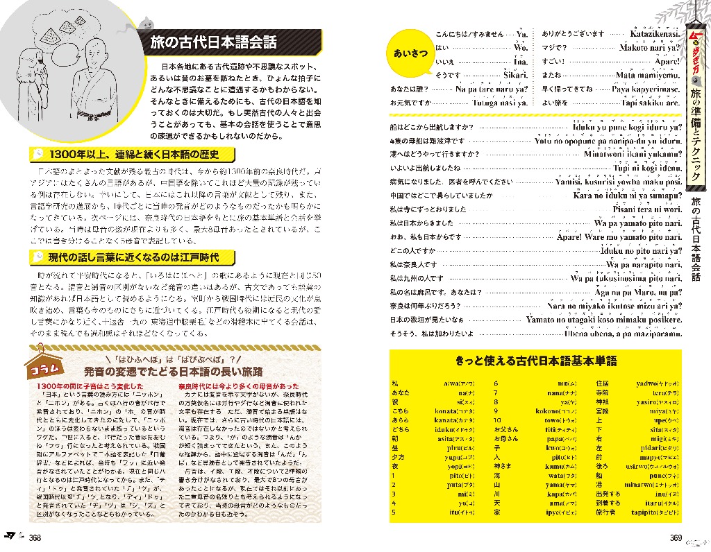 また、突然古代の人々と遭遇しても慌てないように、きっと使える古代日本語基本単語も収録しているので、安心して不思議な旅が楽しめるぞ。