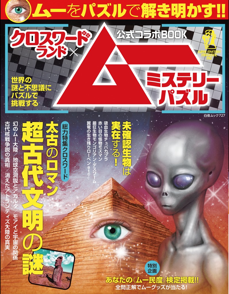 「クロスワードランド」(白夜書房刊)と「ムー」の異次元コラボ『クロスワードランド×ムー公式コラボBOOK。 ミステリーパズル』が5月8日に発売される。