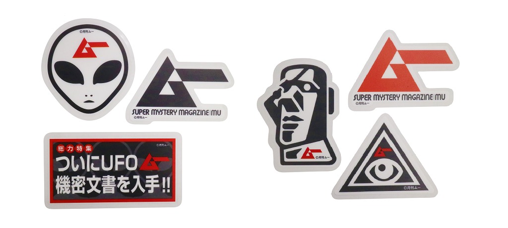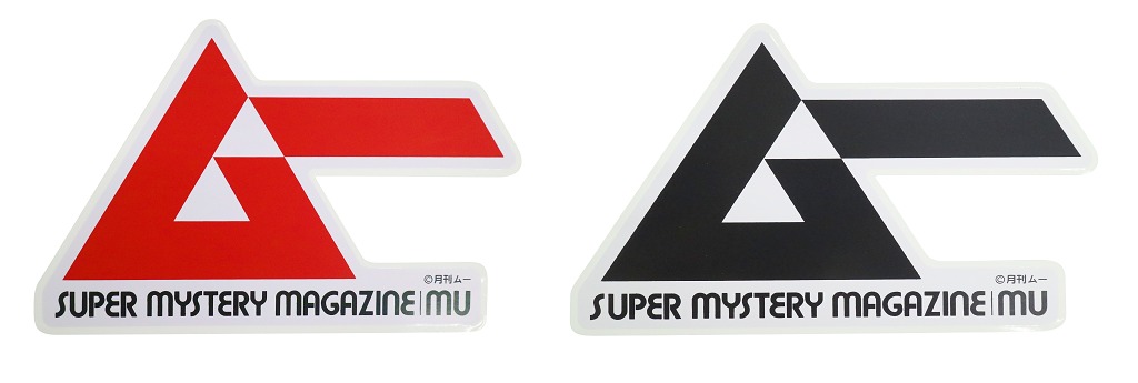 大きいサイズの「ムー」のロゴステッカー。赤と黒のロゴの全2種。魔除けになりそう……。