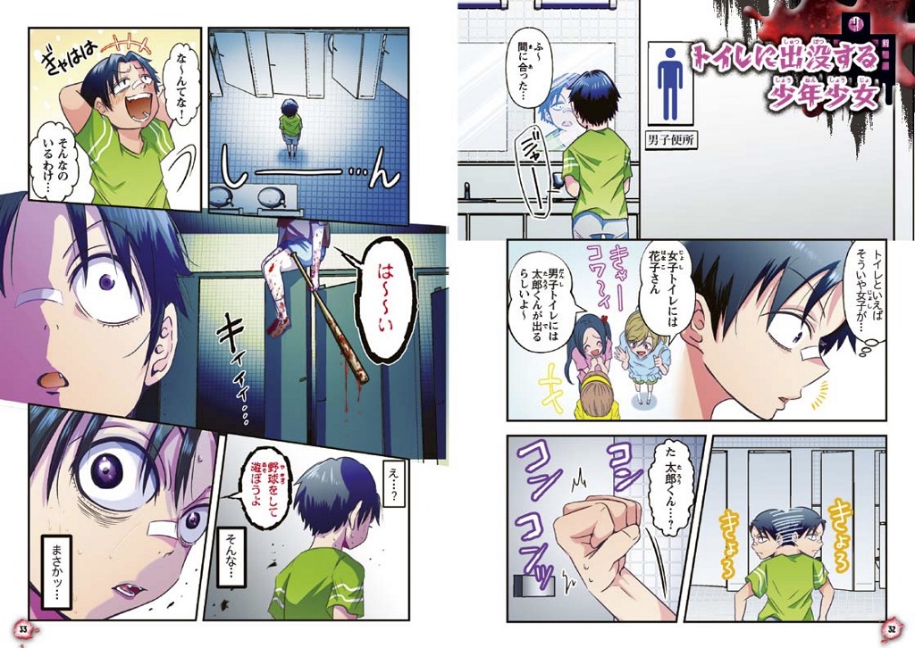 数々の学校の怪談を、もし、自分の身に起きたら……? と読者の想像をかきたてるシーンを臨場感たっぷりに描き、わかりやすく伝ているぞ。