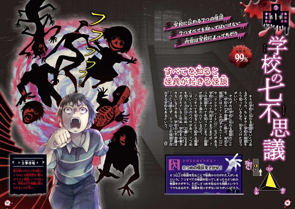 学校にあらわれる恐ろしい怪談や怪人たちをビジュアル化したガイドブック