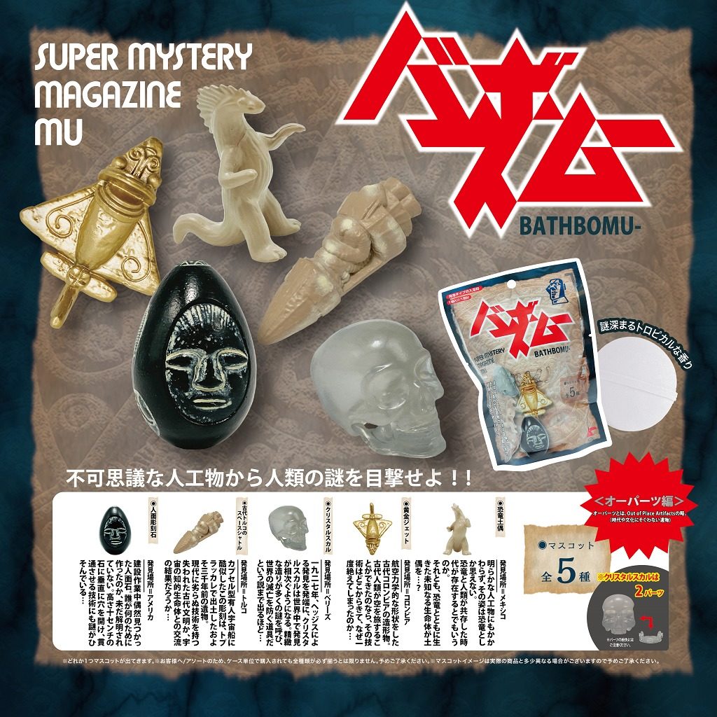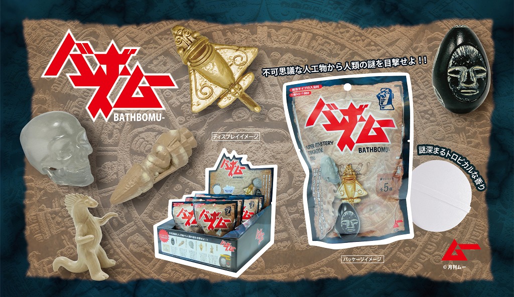 入浴料などさまざまな雑貨商品を手掛けているA-BLENDと「ムー」のコラボ商品「バスボムー」の第2弾が発売中。今回は「バスボムーオーパーツ編」!!