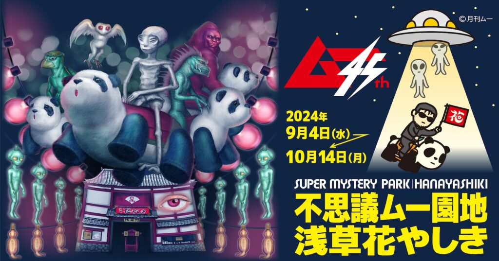 そして最終盤の10月12日には、なんと完全貸切イベントのファンミーティング「不思議体験ムー夜会」も実施! さあ、子どもから大人まで、『ムー民』も花やしきファンも、世界の謎と不思議が集う「不思議ムー園地 浅草花やしき」をみんなで体験しよう!