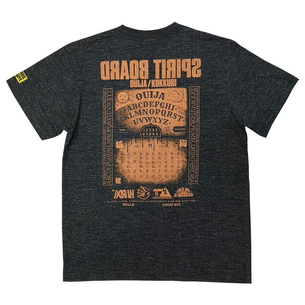 カラーは「あの世ヘザーブラック」色。そこにイエローでプリントした「ウィジャボード」と「コックリさん」というのは、秋にピッタリな色合いではないだろうか。