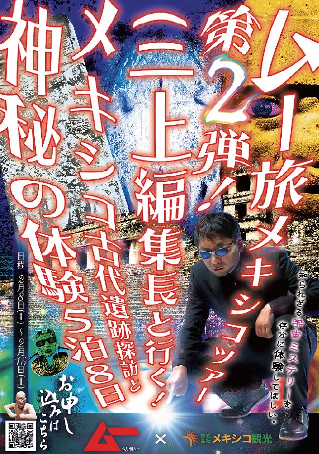 メキシコ観光とのコラボで実現した「ムー旅メキシコ・ツアー」、なんと第一弾が好評につき第二弾が企画された! 今度の旅は、オルメカ文明の遺構「ラ・ベンタ野外博物館」やマヤ遺跡の至宝「パレンケ遺跡」などの古代遺跡を中心に、口伝のみで継承される古代の儀式「カカオセレモニー」が体験できる貴重なツアーとなっている。