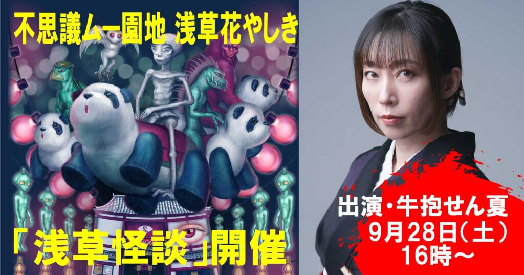 9月28日(土)、怪談師・牛抱せん夏を招き、「浅草怪談」イベントを実施する。