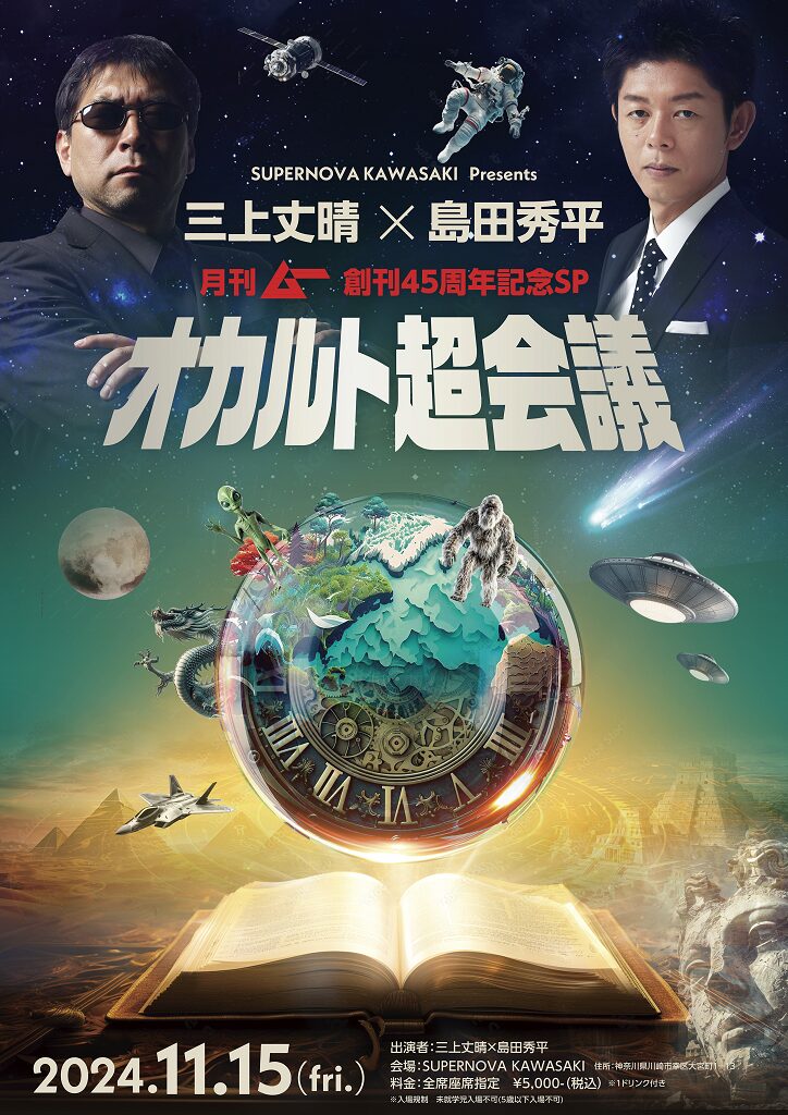 ムーでもおなじみ、手相・怪談・都市伝説で活躍する島田秀平氏と「ムー」編集長・三上丈晴がオカルトを語るツーマンイベントが開催決定! 「三上丈晴×島田秀平 ムー創刊45周年記念SPオカルト超会議」である。