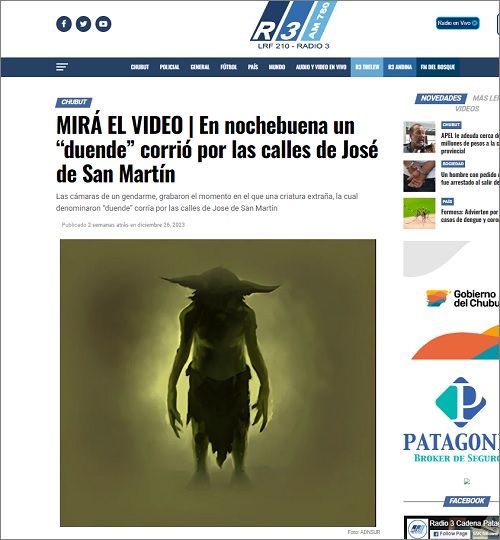 昨年末のクリスマスイブ、アルゼンチン南部チュブ州のホセ・デ・サン・マルティンという街にゴブリンが出現、その決定的瞬間を捉えた監視カメラ映像が流出したことで、地元放送局を巻き込み大騒動に発展している。