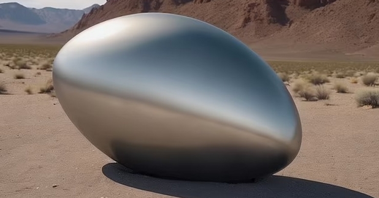 おそらく人里離れた砂漠で、完全に無傷で発見されたと思われるそのUFOは、大型自家用車(SUV)ほどの大きさの金属製で、つるりとした卵型をしており、シルバーがかった灰色の機体表面は滑らかで継ぎ目がなく、また文字や記号のようなものもなかった。さらに、翼やフラップや吸気口さえ存在しなかったが、小さな排気口らしきものだけがあった。