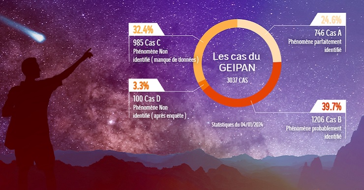そして今年、2月14日にGEIPANのトップとしてフレデリック・クータード新所長の就任が発表されたのだが、時を同じくして現地メディアによるインタビューも行われている。そこで語られた内容によると、GEIPANが精査してきたUFO目撃事例はすで3,037件に上り、そのうち3分の2弱(64.3%)は「完全に」または「おそらく」正体を特定済み、3分の1(32.4%)はデータ不足、そして残された3.3%(約100件)が正真正銘のUFOに分類されているという。