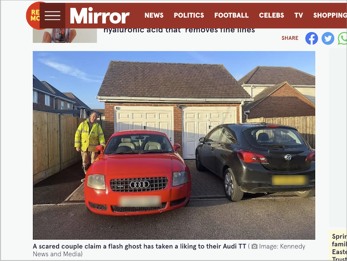 いずれにせよ、夫妻は白い影=幽霊が乗りこんだかもしれない車を今後も使うことに恐怖を感じているようだ。