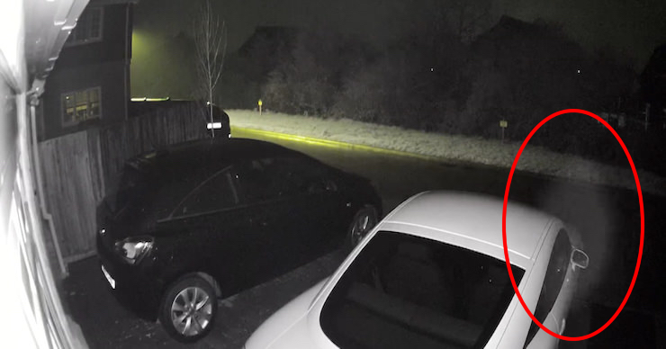 英ケント州に暮らすスミス夫妻の自宅駐車場に設置された監視カメラの映像が世界を戦慄させている。まずは実際に、ソーシャルメディアで公開された動画を見てみよう。道路に面した駐車場に2台の車が並んで停まっているが、画面右下から突然、ぼんやりと輪郭のにじんだ白い影が出現。まるで品定めでもするかのように車の横にとどまり、やがて道路上を浮遊して画面外へ消えていった。