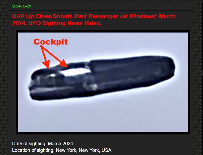 "Watch It fly by over the top of the clip first few seconds.. video was taken from a friend flying back from Florida to NYC. By far the clearest video I’ve ever seen."