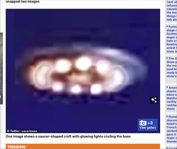 一方、メキシコ沖の石油掘削基地上空でも、2023年10月に船舶の乗組員によって2機のUFOが旋回する様子が撮影されていた。発光した機体が鮮明に写し出されており、1機は円盤状の機体の底に丸や楕円状の光源があり、2機めは機体のフォルムこそ確認できないものの、底に3つの光源を有していることがわかった。