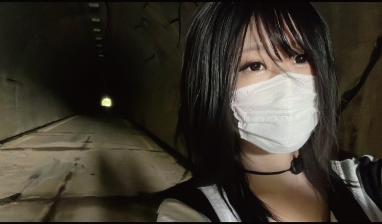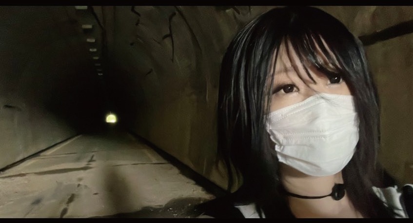 2枚の写真は「奄美大島最恐の心霊スポット」というトンネルで撮影したもの。上、下と続けて撮影された2枚だが、下の写真では背後の影が2体分あるのがわかるだろうか。一瞬で、影だけが増えているのだ。