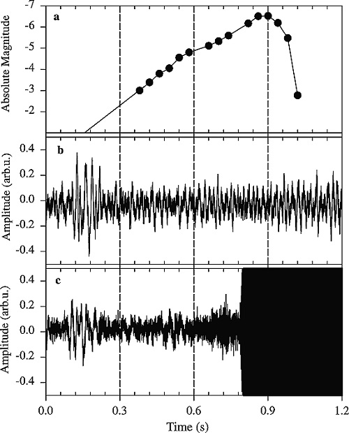流星の音が聞こえたという人の話には、メガネをかけていた人だけが聞こえた、空からではなく周囲一帯から聞こえた、テープレコーダーに録音できた、というものがある。そうした例は、金属などがスピーカーのように電気を音に変換したと考えれば納得がいく。超低周波の電磁波とは一般に1000Hz以下を指すので、人間が聞こえる音の周波数20Hz~20kHzに収まる。電磁波がそのまま音に変換されれば、可聴域の音が出るはずだ。テープレコーダーに録音できた例では、恐らくスピーカーに電磁波が届き、スピーカーを振動させ、音波に変えたのだろう。